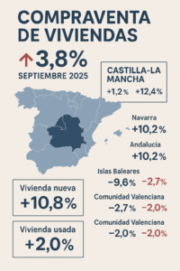 La compraventa de viviendas aumentó un 3,8 % en septiembre de 2025
